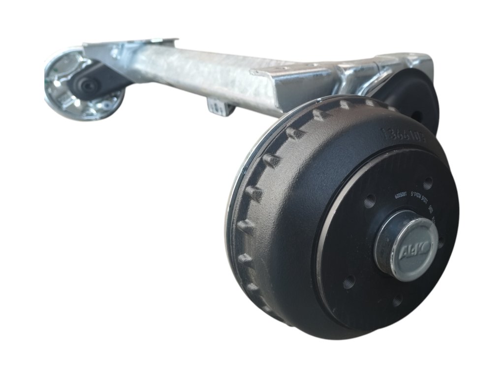Tato brzděná náprava AL-KO je určena pro širokou škálu brzděných přívěsů a využívá moderní systém odpružení pomocí gumových válců uložených v šestihranném profilu.