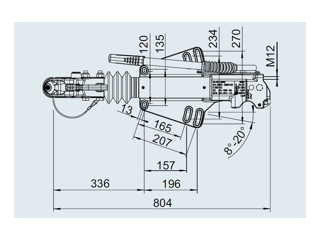 Tato univerzální nájezdová brzda je navržena pro montáž na oj ve tvaru "V", a to jak z horní, tak ze spodní strany, podle konstrukce přívěsu. Je určena pro těžší přívěsy s celkovou hmotností v rozmezí 2000 až 3500 kg.