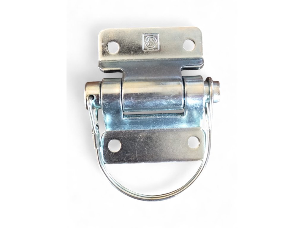 Kompletní bočnicový pant s čepem zajištěným pružinovou pojistkou. Díky tomuto řešení lze po odjištění pružiny čep snadno vyjmout a obě části pantu rychle oddělit.