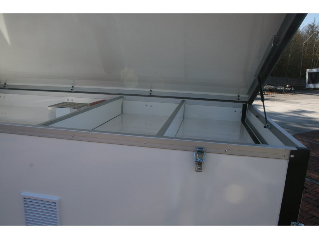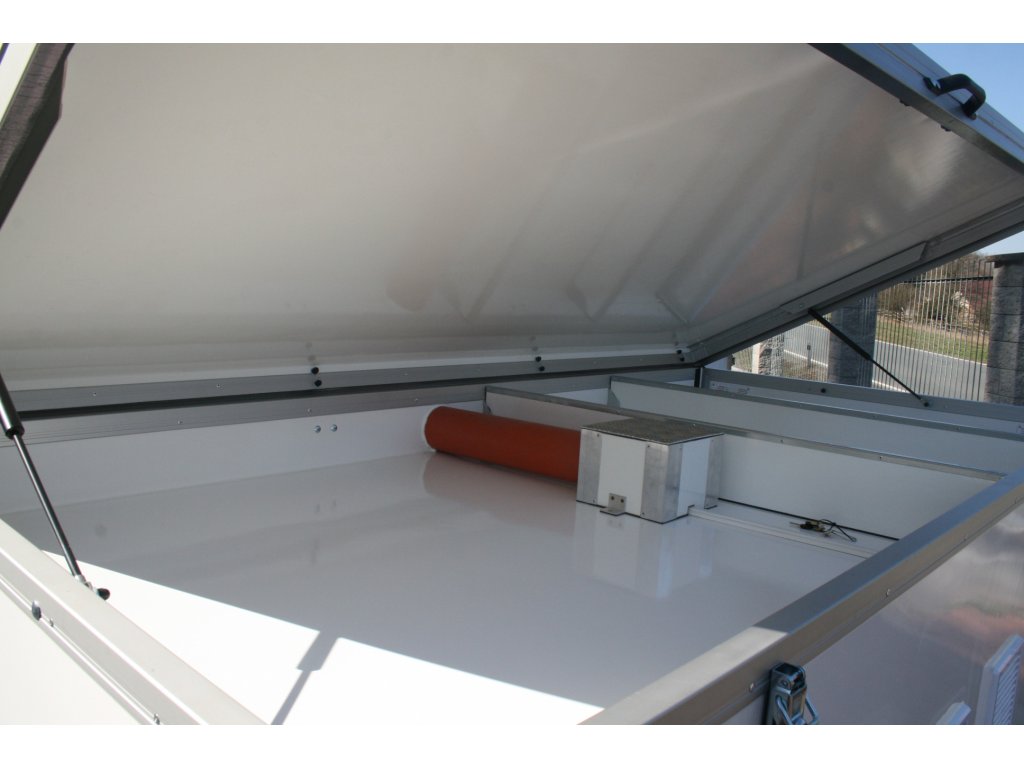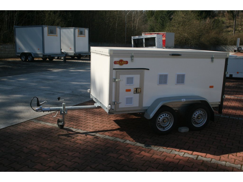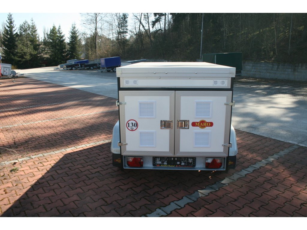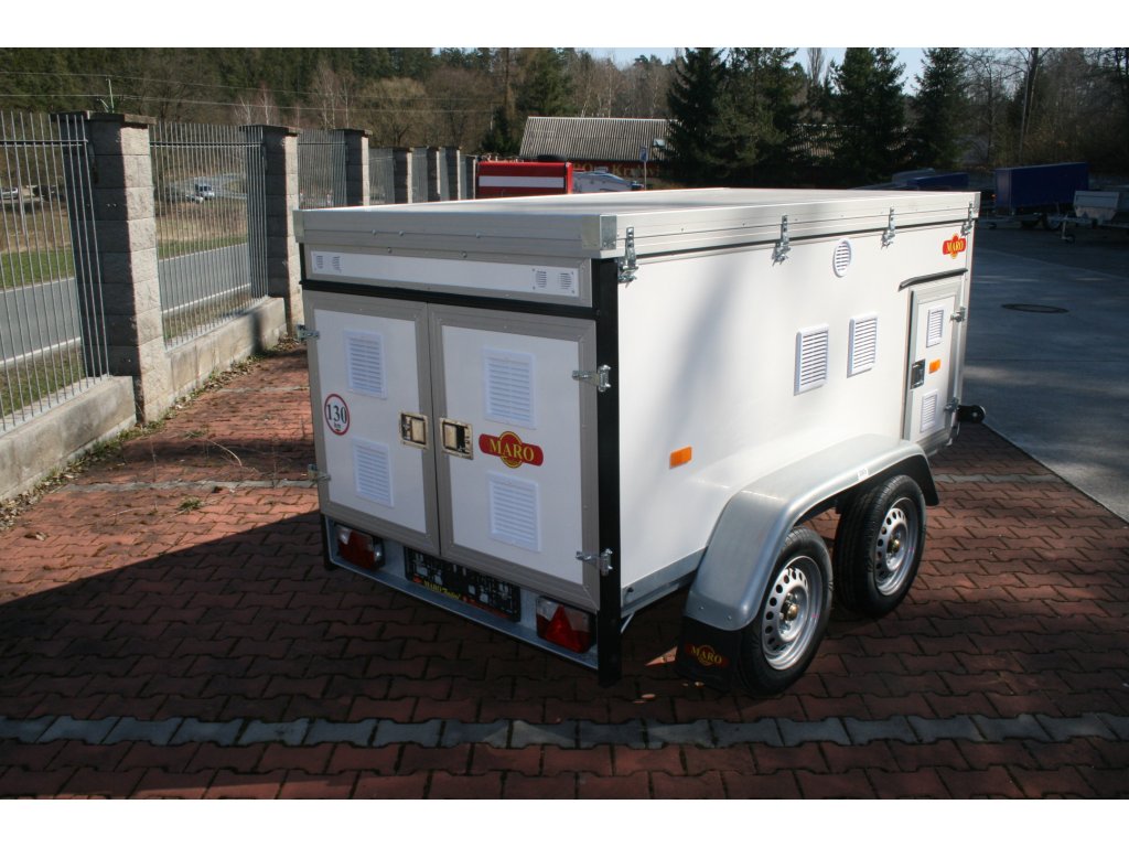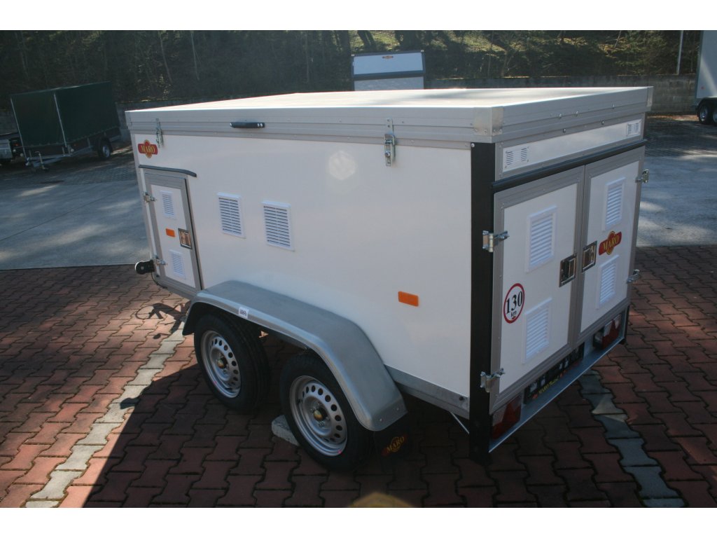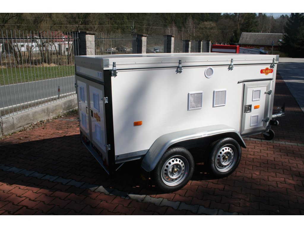 Přívěs má izolovanou nástavbu která je vyrobena z lepeného sendvičového panelu . Standardní barva nástavby je bílá , za příplatek nabízíme barvu nástavby stříbrnou nebo černou . Přívěs má 4 samostatné boxy. Každý box má zamykací vstupní dveře s plynovými vzpěrami které zabraňují samovolnému zavírání dveří v případě, že chcete nechat dveře při stání přívěsu otevřené + druhé hliníkové mřížové dveře. Pod střechou přívěsu je úložný prostor , úložný prostor má výklopné víko se zámkem. Víko je optřeno plynovými vzpěrami pro snadné otevírání . Na oji přívěsu je podpěrné kolečko , v zadní části přívěsu jsou 2 podpěrné nohy. Konstrukční rychlost přívěsu je 130 km/hod.