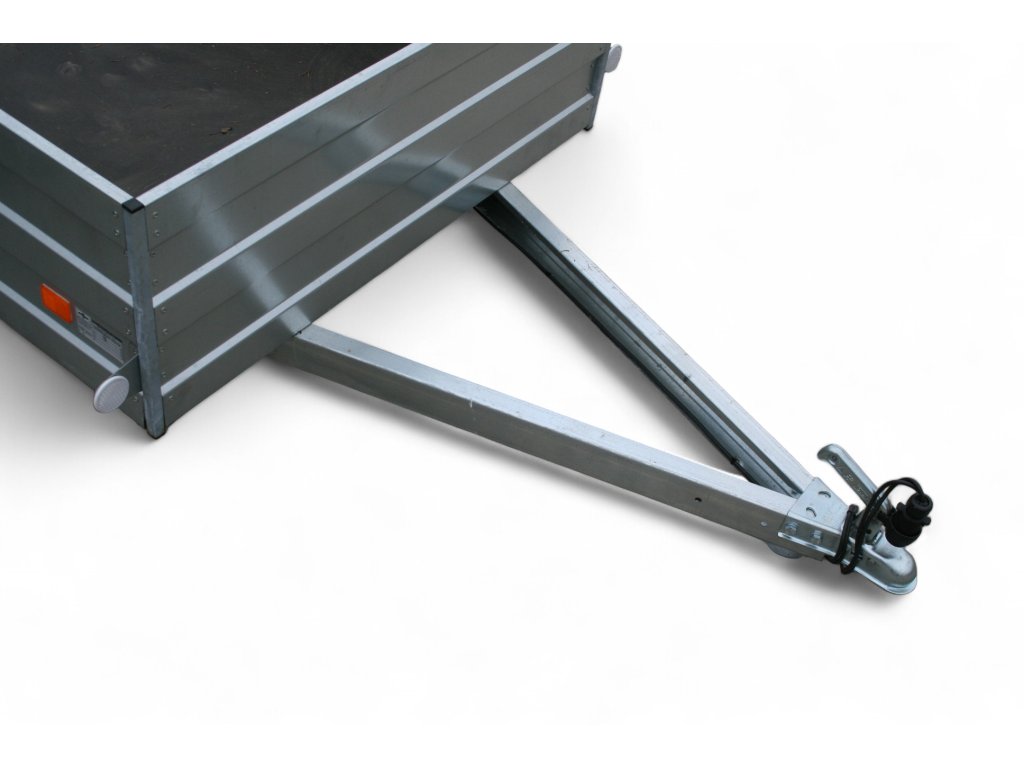 Přívěs je české výroby s je s plechovámi bočnicemi z pozinkovaného plechu které jsou zpěvněné prolisováním. Přívěs má bočnice 400 mm vysoké což je nadstadrtní výška o proti konkurenci. Tento přívěs je doplněn o přetahovací plachtu, která poskytne dokonalou ochranu proti všem povětrnostním vlivům. Přívěs má v podlaze 4 ks kotvicíh ok . Podlaha přívěsu je vyrobena z vodovzdorné foliované překližky v protiskluzové úpravě. Blatníky přívěsu jsou z pevného plastu. Oj přívěsu je do tvaru V . Sdružená koncová světla jsou krytá ve světelném panelu který je částečně chrání proti poškození. Jedná se o nejprodávanější přívěs z naší nabídky .