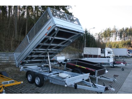 Třístranný sklápěcí přívěs TIPPER 3 B2 3500 kg 4100x2100x1350 mm, elektrická pumpa a síťová nástava 1000 mm
