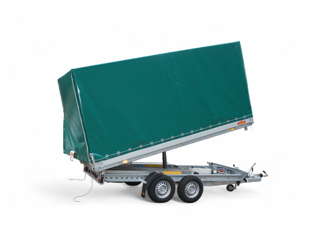 TIPPER 2 je robustní brzděný dvounápravový přívěs s koly vedle ložné plochy a hydraulickým sklápěním (dozadu) pomocí ruční pumpy. Tato verze je navíc vybavena vysokou celní plachtou o výšce 1800 mm nad bočnice, která spolehlivě chrání náklad proti dešti, větru i prachu. Otevírání plachty je standardně ze všech stran a jištěno celním lankem. Plachtu lze na přání výškově upravit podle potřeb zákazníka. TIPPER 2 je ideální volbou pro firmy, řemeslníky i náročné uživatele, kteří potřebují univerzální sklápěcí přívěs s vysokou ochranou nákladu.