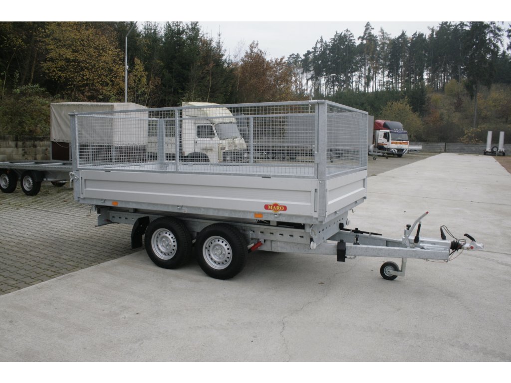 Třístranný sklápěcí přívěs TIPPER 2 B2 2700 kg 3300x1760x850 mm, elektrická pumpa a síťová nástava 500 mm