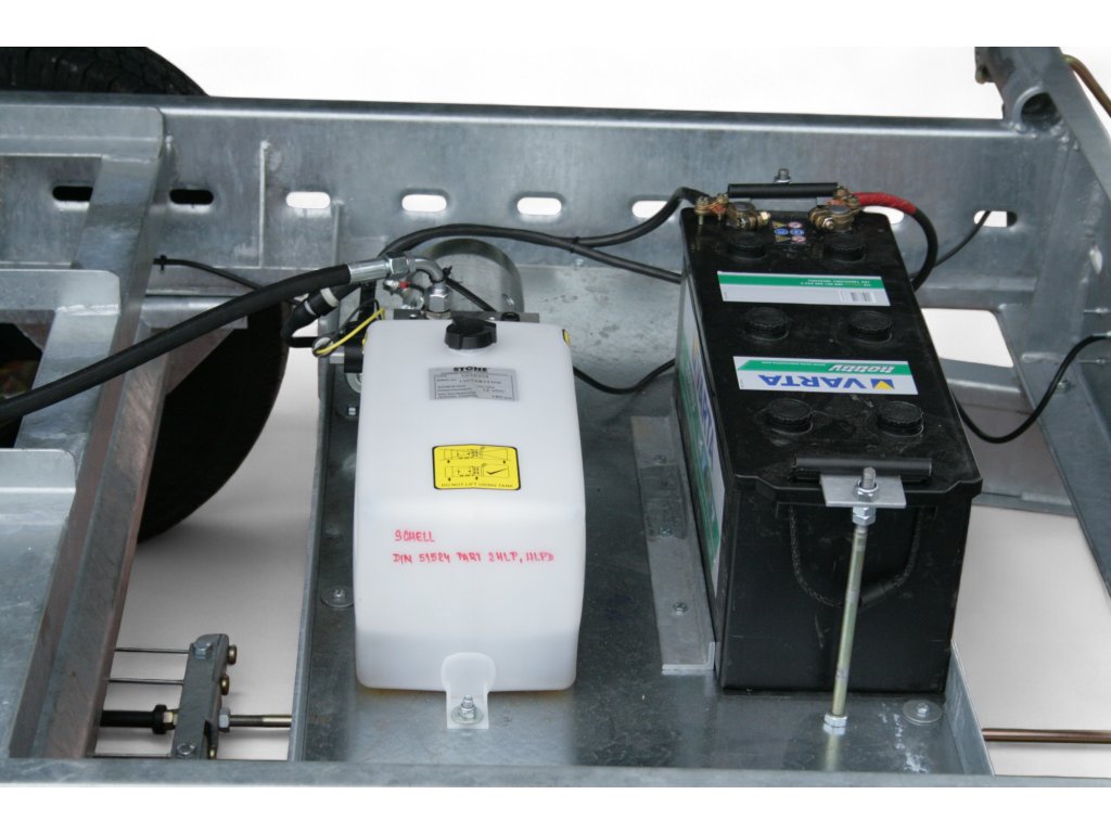 Robustní dvounápravový brzděný přívěs s koly vedle ložné plochy určený pro náročné pracovní nasazení. TIPPER 2 nabízí hydraulické sklápění korby na tři strany pomocí elektrické pumpy s trakční baterií a dálkovým ovládáním. Díky pevné konstrukci, univerzálnímu využití a pohodlné manipulaci je ideální volbou pro stavební firmy, zahradníky, zemědělce i náročné soukromé uživatele.