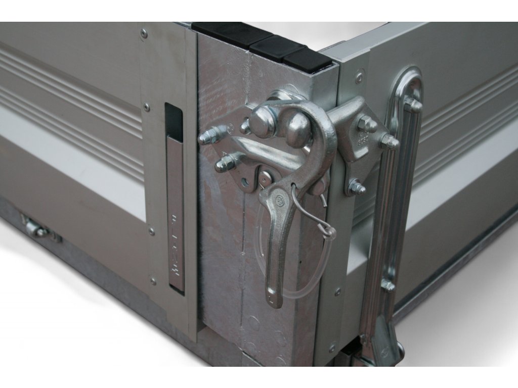 Bočnice výšky 350 mm z eloxovaných hliníkových profilů – všechny bočnice sklopné a odnímatelné, včetně čel