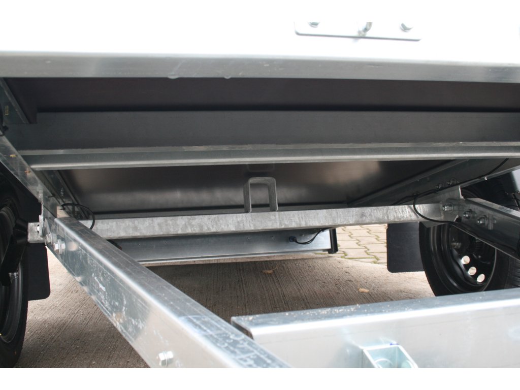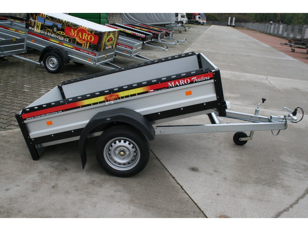 Přívěs je české výroby z profi řady ,je mechanicky sklopný , má ocelový zinkovaný rám , podlaha je vyrobena z vodovzdorné foliované překližky s protiskluzovou úpravou . V podlaze jsou 4 kotvicí misky na poutání materiálu . Hliníkové bočnice jsou chráněny eloxováním v přírodní barvě . Na bočnicích je děrovaný reling sloužící ke snadnému poutání převáženého materiálu. Pod podlahou přívěsu jsou příčné výztuhy které zpevňují podlahu a brání jejímu prohýbání při naložení těžkého materiálu. Přívěs má sklopné přední i zadní čelo a umožňuje převážení dlouhých předmětů. Blatníky přívěsu jsou z pevného plastu. Zámky bočnic jsou systém euroclip.