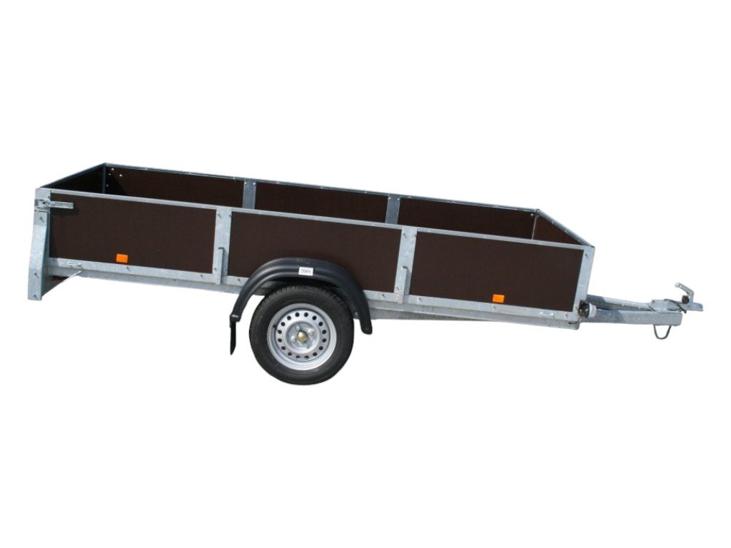 - Podlaha a bočnice přívěsu jsou vyrobeny z vodovzdorné foliované překližky o síle 15 mm vždy v hnědé barvě. Podlaha má navíc protiskluzovou úpravu povrchu