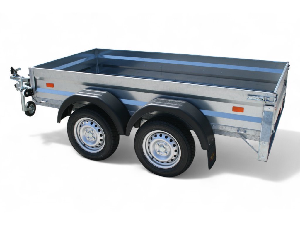 TITAN v nebrzděné dvounápravové verzi přináší maximální pevnost, dlouhou životnost a spolehlivost i při každodenním intenzivním použití. Díky svařovanému rámu a zesíleným ocelovým bočnicím je ideální volbou pro firmy, půjčovny i náročné soukromé uživatele.